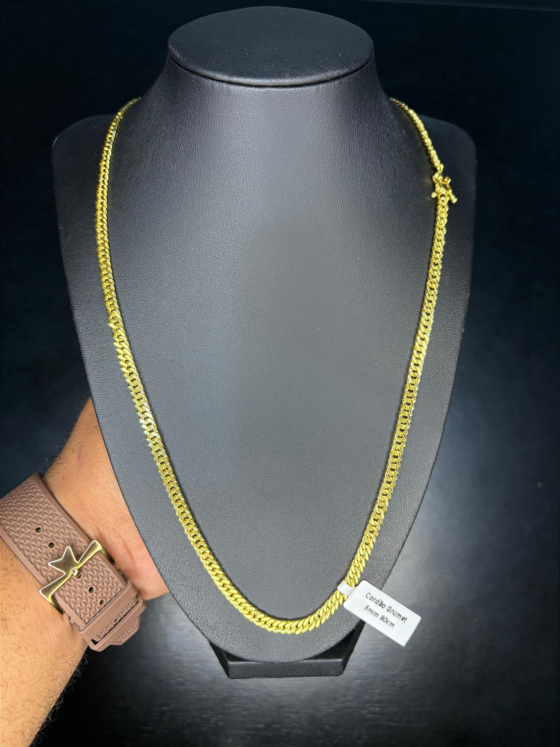 Elos soldados com precisão artesanal, acabamento polido com padrão de ourivesaria, garantindo peças que impressionam pelo brilho e pela resistência.