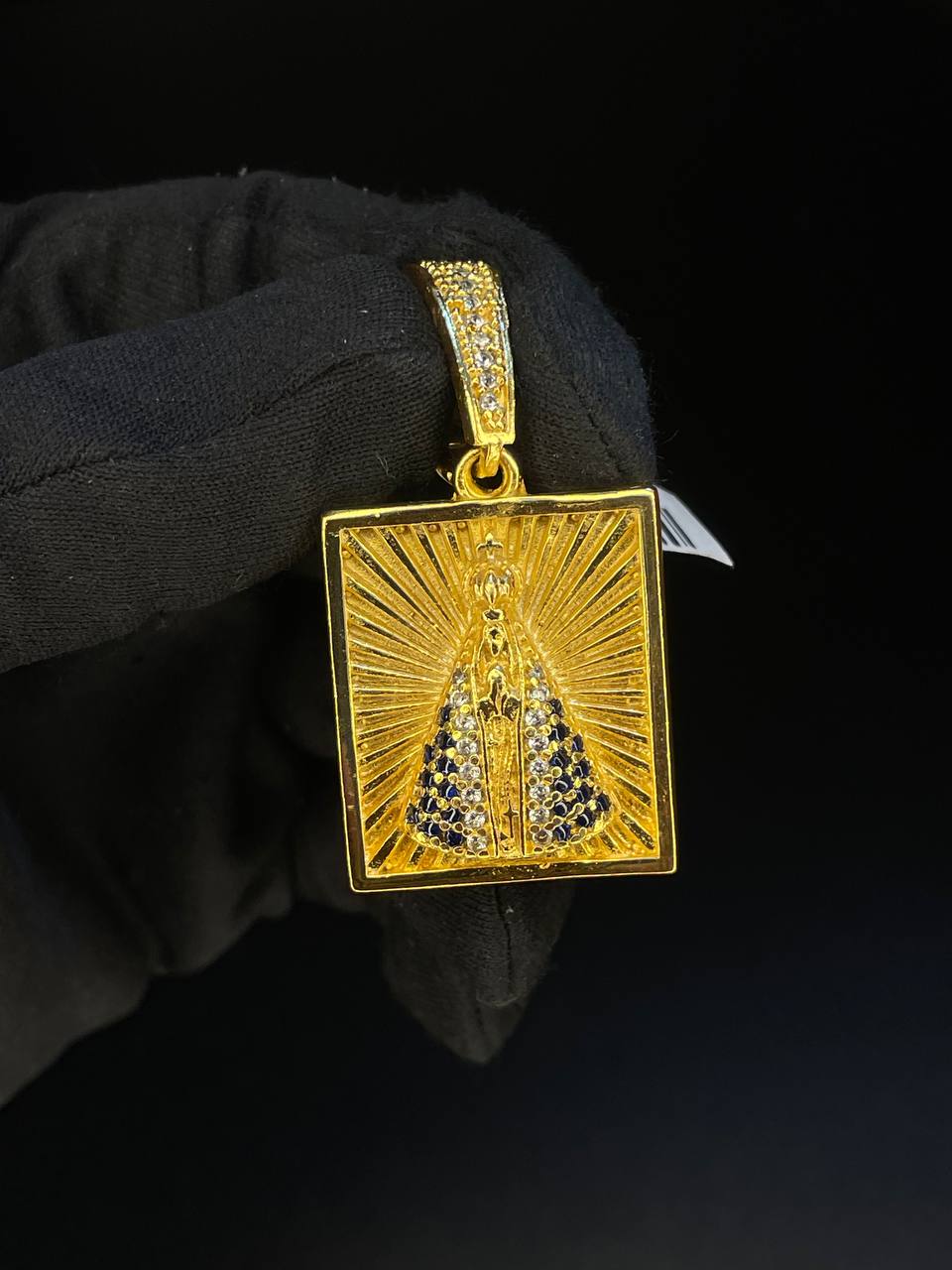 Aplicamos um generoso banho com 5 camadas ouro 18k puro através do processo de imersão, seguido de uma camada protetora de verniz importado com propriedades antialérgicas, assegurando brilho intenso e proteção contra desgaste.