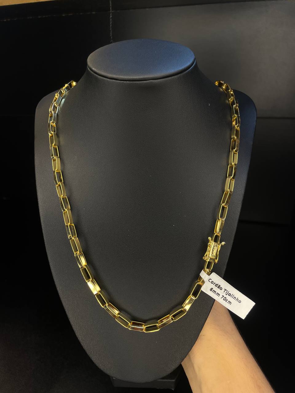 Elos soldados com precisão artesanal, acabamento polido com padrão de ourivesaria, garantindo peças que impressionam pelo brilho e pela resistência.