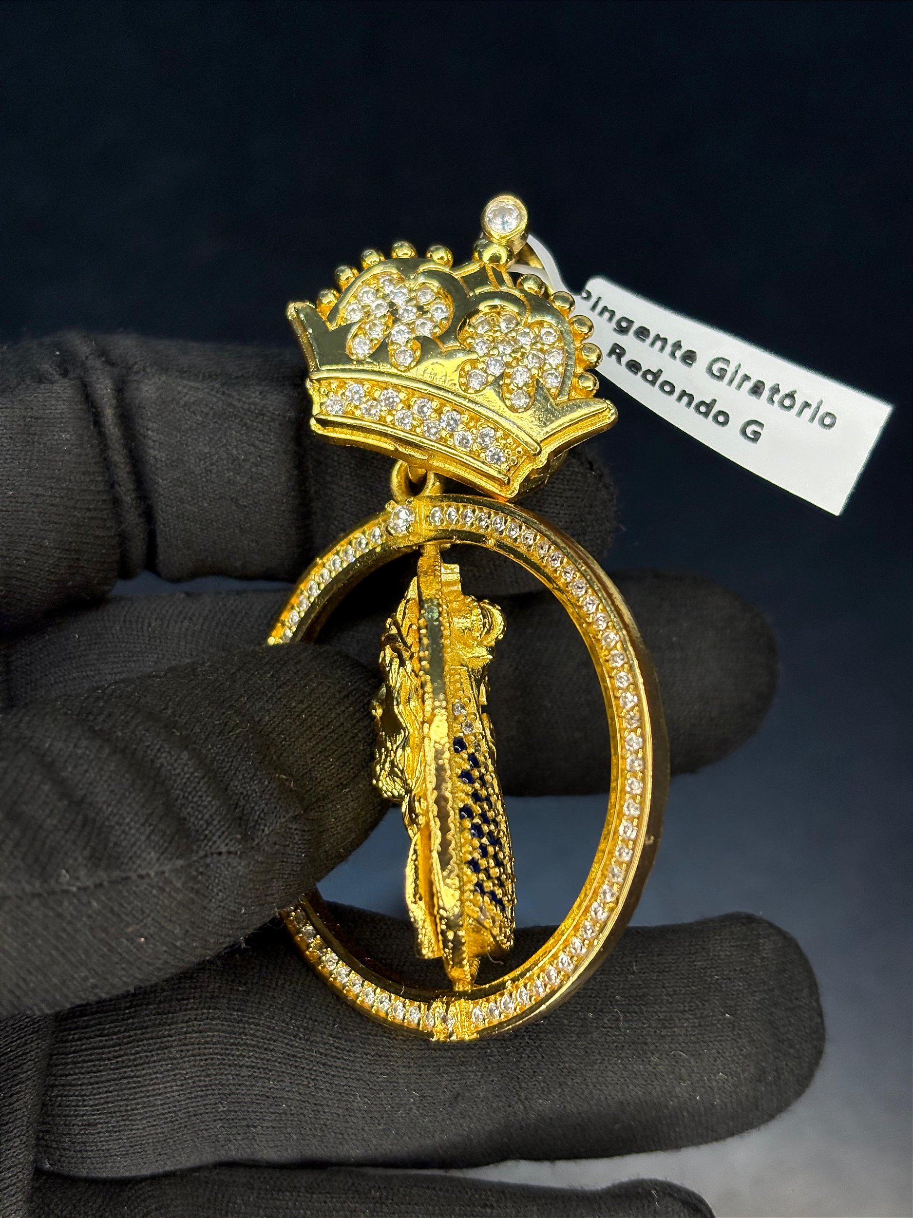 Aplicamos um generoso banho com 5 camadas ouro 18k puro através do processo de imersão, seguido de uma camada protetora de verniz importado com propriedades antialérgicas, assegurando brilho intenso e proteção contra desgaste.