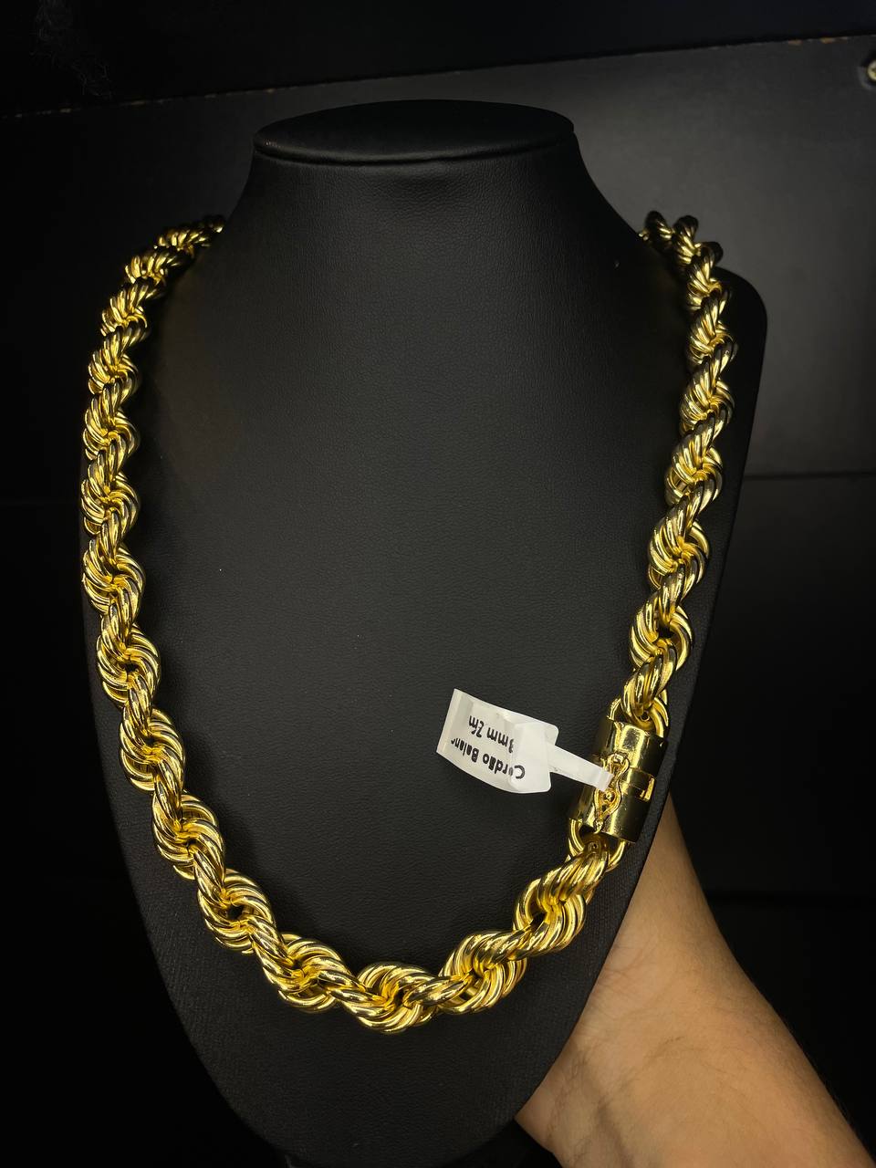 Elos soldados com precisão artesanal, acabamento polido com padrão de ourivesaria, garantindo peças que impressionam pelo brilho e pela resistência.
