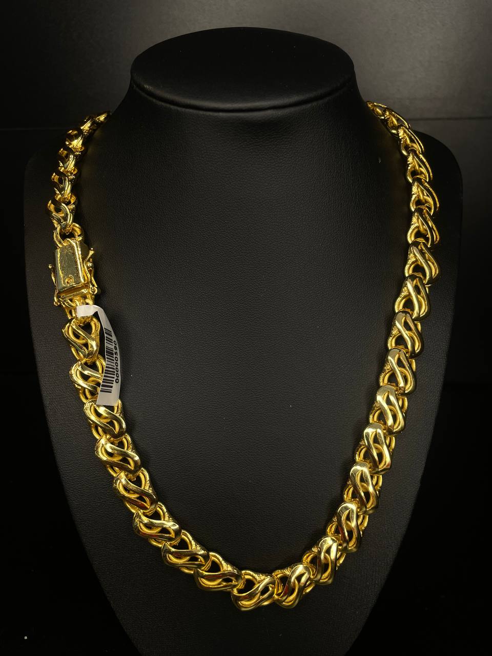 Elos soldados com precisão artesanal, acabamento polido com padrão de ourivesaria, garantindo peças que impressionam pelo brilho e pela resistência.
