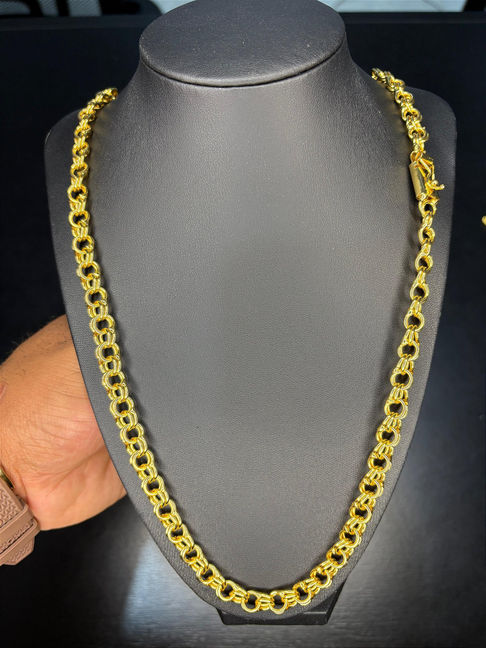 Elos soldados com precisão artesanal, acabamento polido com padrão de ourivesaria, garantindo peças que impressionam pelo brilho e pela resistência.