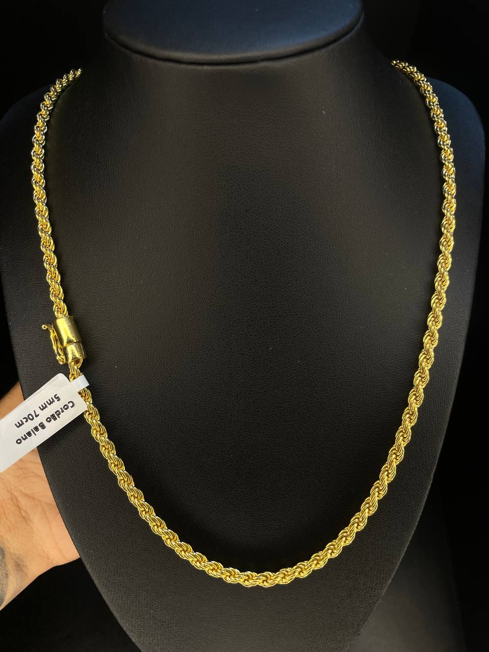 Elos soldados com precisão artesanal, acabamento polido com padrão de ourivesaria, garantindo peças que impressionam pelo brilho e pela resistência.