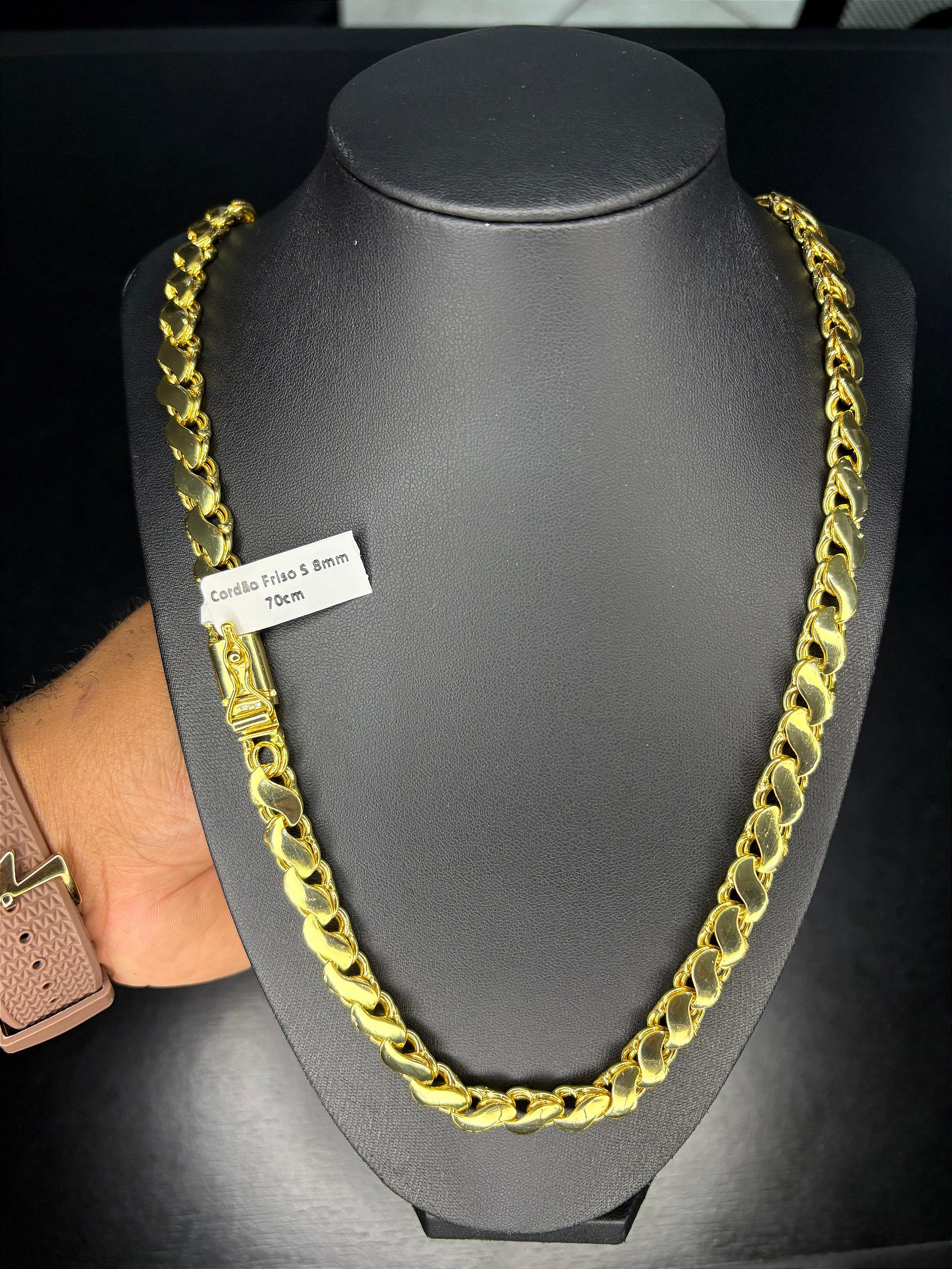 Elos soldados com precisão artesanal, acabamento polido com padrão de ourivesaria, garantindo peças que impressionam pelo brilho e pela resistência.