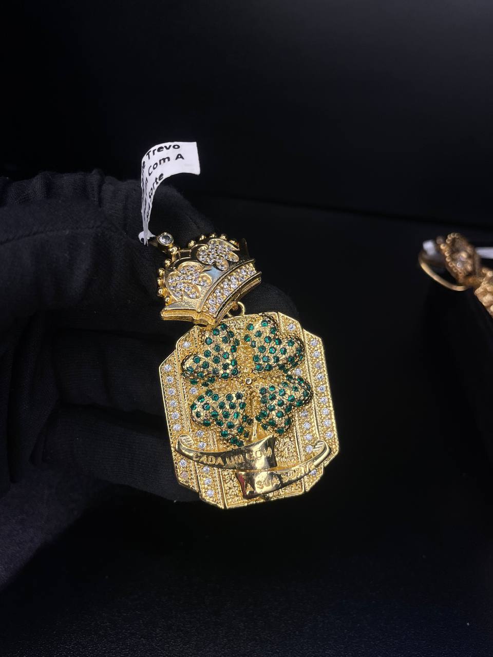 Aplicamos um generoso banho com 5 camadas ouro 18k puro através do processo de imersão, seguido de uma camada protetora de verniz importado com propriedades antialérgicas, assegurando brilho intenso e proteção contra desgaste.