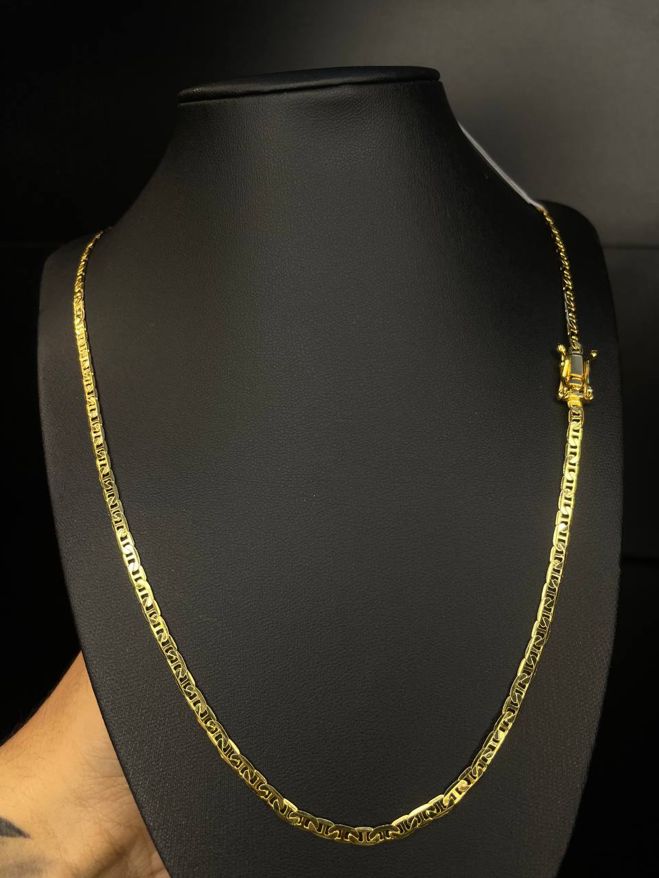 Elos soldados com precisão artesanal, acabamento polido com padrão de ourivesaria, garantindo peças que impressionam pelo brilho e pela resistência.