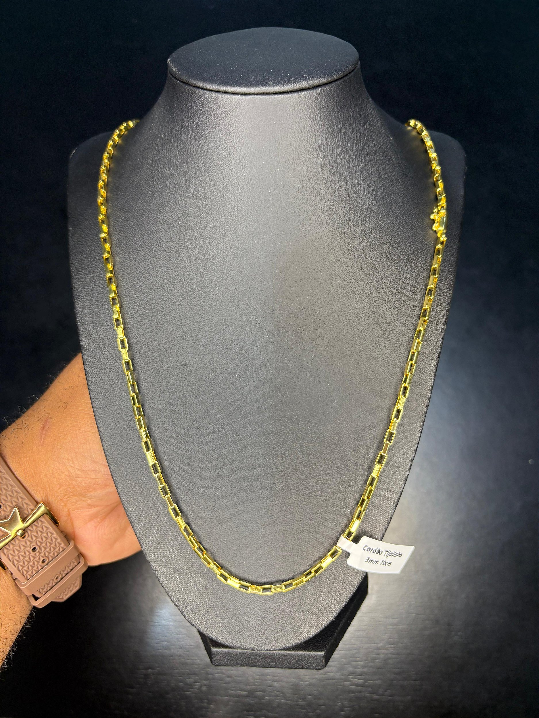 Elos soldados com precisão artesanal, acabamento polido com padrão de ourivesaria, garantindo peças que impressionam pelo brilho e pela resistência.