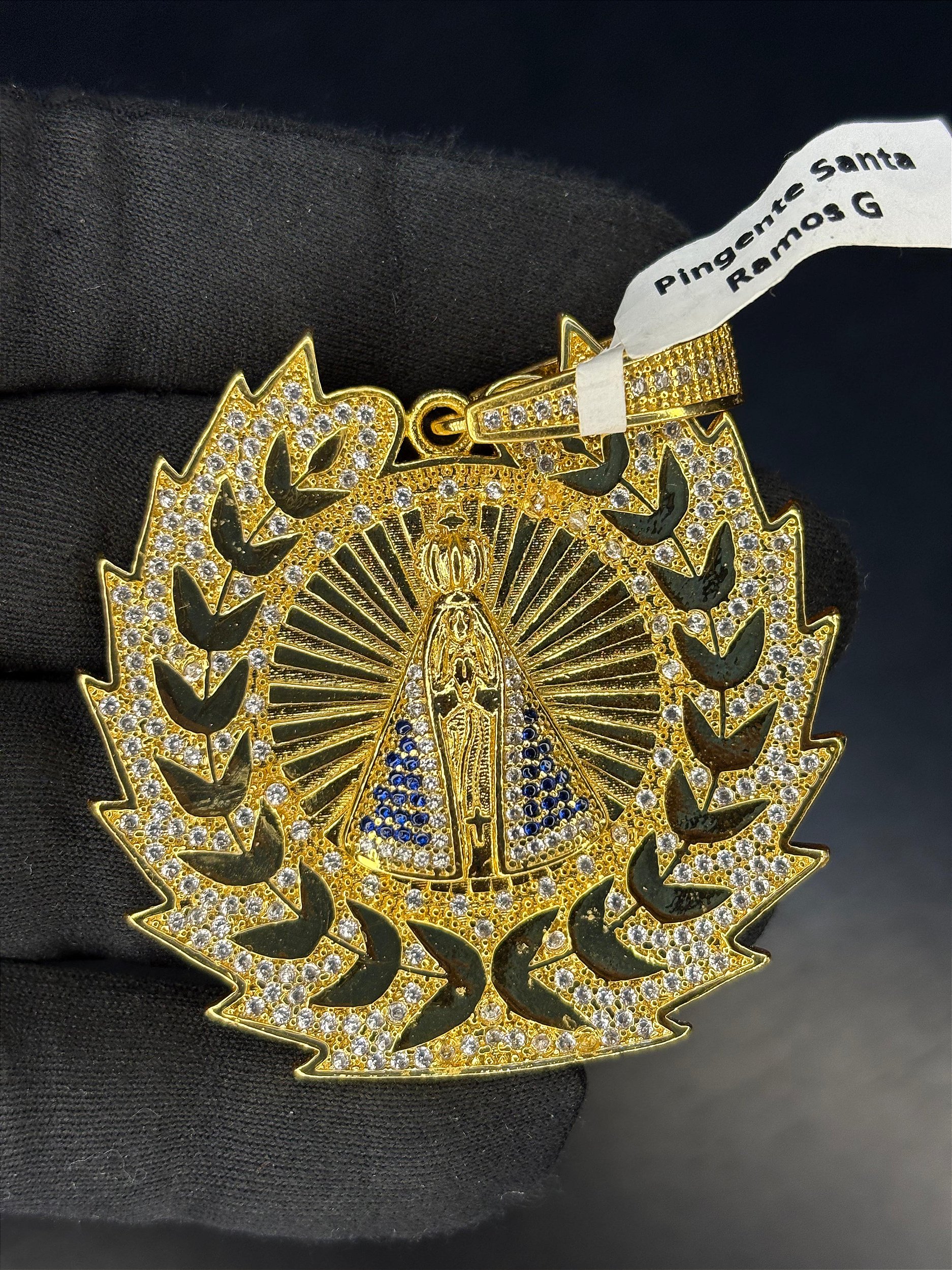 Aplicamos um generoso banho com 5 camadas ouro 18k puro através do processo de imersão, seguido de uma camada protetora de verniz importado com propriedades antialérgicas, assegurando brilho intenso e proteção contra desgaste.