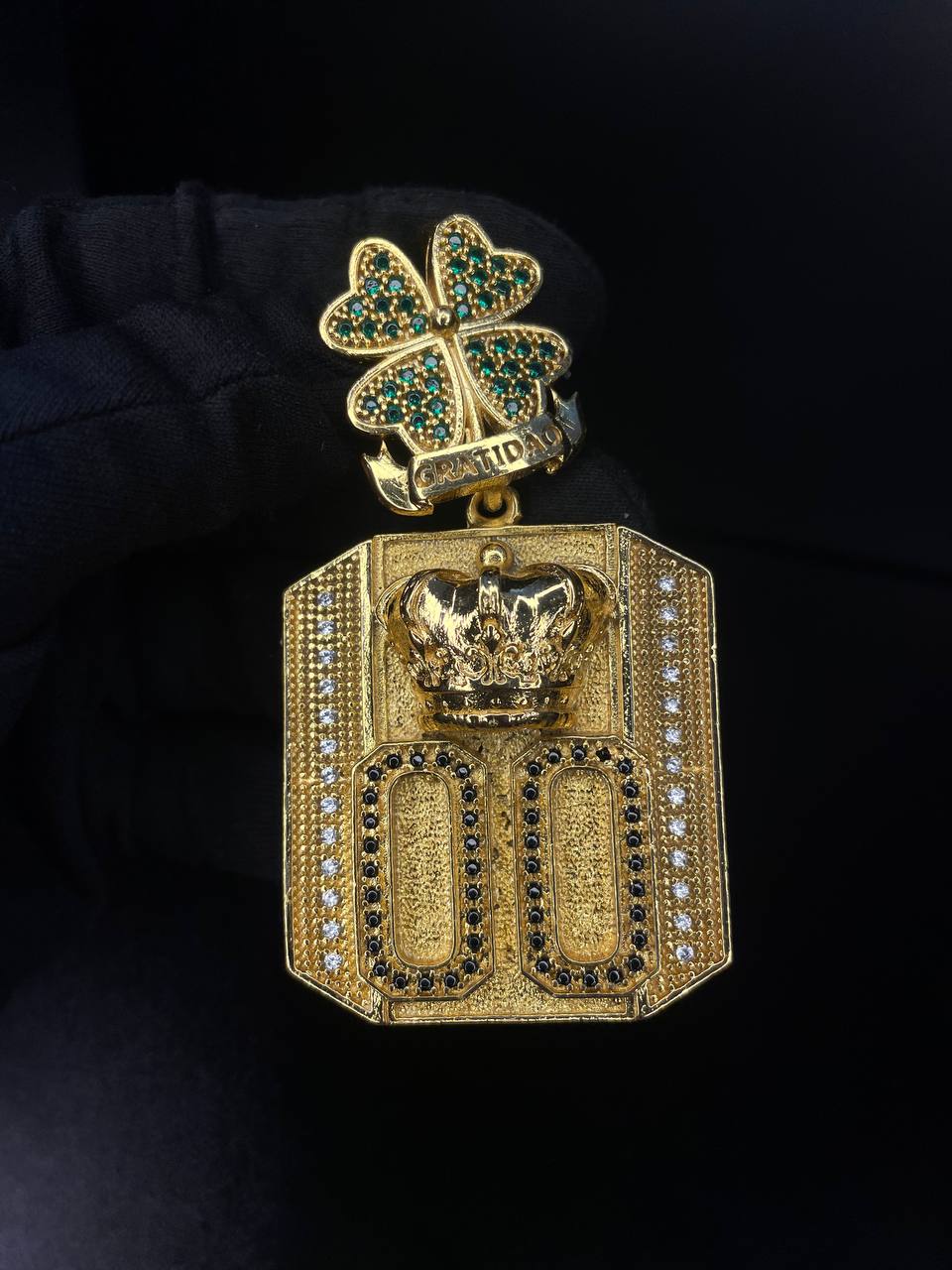 Aplicamos um generoso banho com 5 camadas ouro 18k puro através do processo de imersão, seguido de uma camada protetora de verniz importado com propriedades antialérgicas, assegurando brilho intenso e proteção contra desgaste.