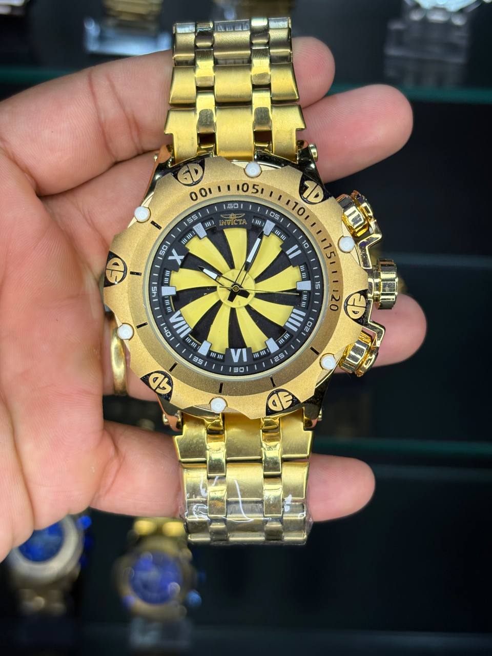 Este relógio possui mostrador giratório quando você mexe o braço, o fundo gira.
